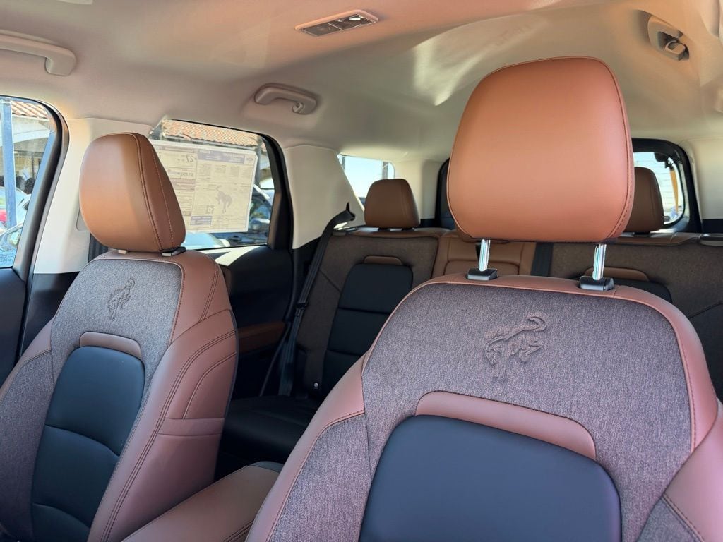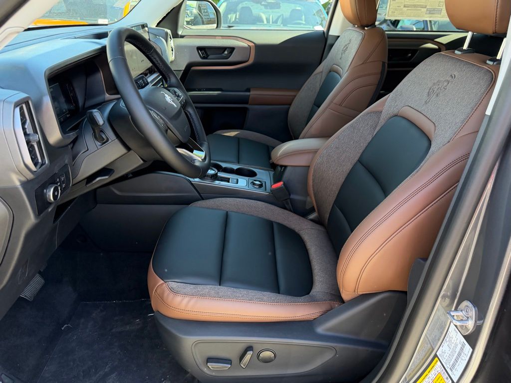 I got a 2025 Big Bend with the black diamond off road package. The steel modular front and rear in combination with bush guard gives this year model. A very aggressive off road look. With the ability to easily mount accessories and power them with the factory installed auxiliary switches. Hitch receiver seamlessly mounted into the rear steel bumper flanked by some very chunky recovery points. The upgraded aluminum rims wrapped with Continental all-terrains. It make this the most capable bronco sport yet. The interior of the 2025 has been updated with a new 13 inch touchscreen with Android Auto and apple car play. The lines of the dash flow elegantly from the new infotainment screen to the new all digital 12 inch gauge chaster. Toggling through the different modes on the gauge chaster is very intuitive, and all the displays are laid out very cleanly. Moving from gauge chaster the center storage cubby just below the infotainment screen there is a wireless charger and USB/ USB-c ports. The passenger side of that same cubby gets a handle and a matching one on the roof just in case the driver bucks a little too much. The passenger also gets a mesh storage area. That leads us to the fact this vehicle has tons of storage options all throughout. You have pockets on the sides of the front two seat big enough for the latest new phones. Very generous door storage on all four doors plus huge glove box and center console with 12 volt outlet. The back side of the center console has air vents and another 12 volt outlet plus a 110 outlet. Now getting to the cargo area it is massive for a crossover SUV. With off road package you get a cargo management system and a very nice rubber mat. Under that there is a full size tire plus scissor jack and funnel to use with the capless filler system. On the liftgate there isa pair of very bright led lights turned on with a switch in the cargo area. This feature packed vehicle has tons awesome gadgets and hidden a little homages I spend all day just talk that. At the end of the day it is car. So how does it drive. It is wonderful, the steering and pedal response is beautiful. Rides very smooth and little to no road noise going down the highway. The active cruise control and co-pilot 360 have been very handy. The car literally drives itself most of the time. There is not enough good things I could same about this car. I love it and you pick one too. You will see what I mean. - 5.0